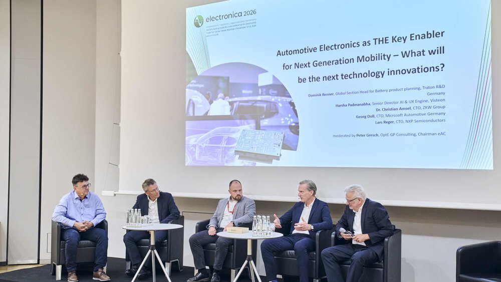 At the electronica Automotive Conference, decision-makers from companies such as Audi, Aumovio, Infineon Technologies, Microsoft Automotive Germany, NXP Semiconductors, Robert Bosch, and STMicroelectronics discussed current innovations and challenges facing the industry. The presentations covered topics such as global strategies for electromobility and software-defined vehicles, autonomous driving, new developments in lighting systems and the use of AI, and cybersecurity issues. In panel discussions, participants talked about geopolitical conditions, the challenges of international cooperation, and Europe's role in technological transformation. An extra panel on the main stage at IAA Mobility focused on ways to strengthen Europe's competitiveness, especially since semiconductors and software are becoming key strategic factors in the automotive value chain.